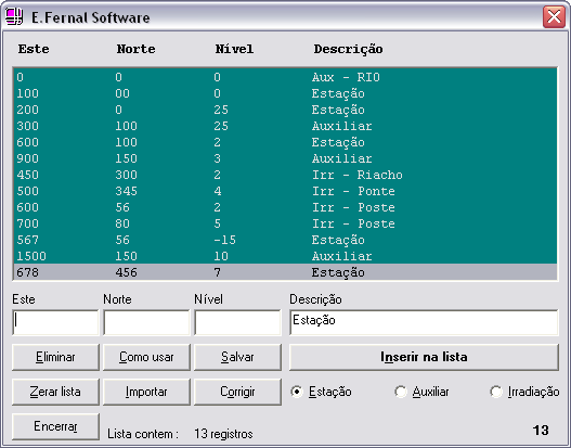Esta é uma caderneta de entendimento imediato. Os botões existentes tem funcionamento similar aos das cadernetas anteriores. Os arquivos são salvos com a extensão .ENN [ Este, Norte e Nível ]