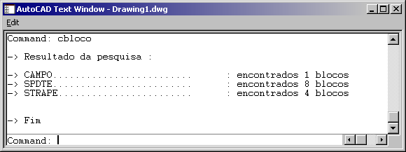Conta as inserções de blocos em seu desenho, apresentando o resultado na tela de textos... Vide figura abaixo
