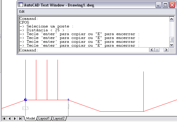 Copia seguidamente um poste sobre o perfil, informada a distância entre eles...