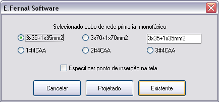 Especifica os cabos desenhados com os comandos RPRIM, RSECU ou AMBAS, inserindo dados para posterior quantificação com o comando MEDIR.