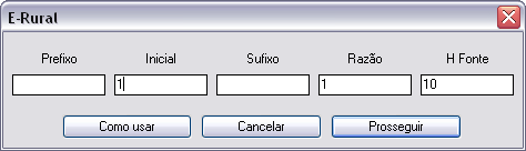 Numeração sequencial. Este é um comando para inserção de textos numéricos que podem ou não ter prefixo e sufixo. Você deve informar o número inicial, a razão aritmética, que pode ser negativa, e a altura da fonte...