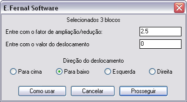 Permite ampliar/reduzir blocos, com ou sem deslocamento. Para mantê-los em seus pontos de inserção, coloque 0.0 como valor de deslocamento.