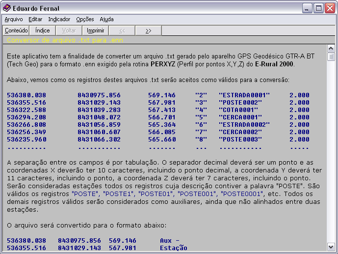 Converte um arquivo importado do aparelho gps para o formato exigido pelo E-Rural...