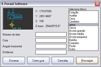 Insere um bloco irradiado a partir de um ponto clicado, fornecidos os demais parâmetros neste quadro de diálogo.