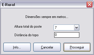 Permite alterar a altura de postes já inseridos no perfil, considerando o engastamento... Selecione os postes desejados, clique enter, entre com os parâmetros desejados no quadro de diálogo da figura abaixo e clique o botão 'Prosseguir' : todos os postes selecionados serão alterados...