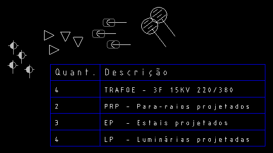 Ao sair do quadro anterior, se a opção tiver sido 'Todo o desenho', todos os blocos válidos para a rotina serão considerados e o resultado será uma planilha como a que aparece na figura abaixo: