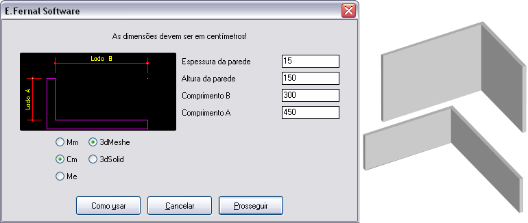 Cria uma parede em ângulo fornecido pelo quadro de diálogo. Após a rotina você dever rotacionar o objeto para ajuste em seu desenho...