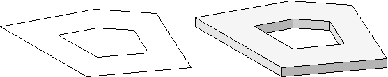 Permite criar um solido vazado, a partir de duas polilinhas fechadas adequadas para a função 'EXTRUDE' do AutoCAD©. Selecione a polilinha interna e em seguida a externa. Informe a altura da extrusão na linha de comandos do AutoCAD©. Acima, um sólido criado com este comando.