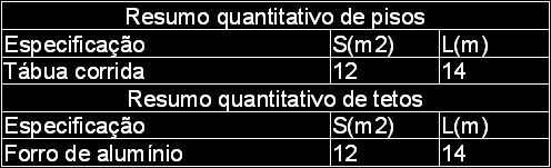 Gera uma planilha quantitativa de pisos e tetos, utilizando-se dos blocos inseridos com os comandos QPISOS e QTETOS. A imagem abaixo mostra um exemplo no qual somente uma polilinha foi especificada (piso e teto).