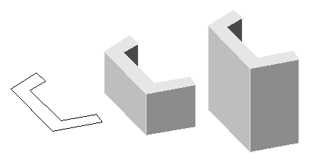 O resultado pode ser visto abaixo: os dois '3DSOLID' tem a mesma forma, porém com alturas diferentes: foram gerados a partir de uma mesma polilinhas, ainda que a original tenha sido apagada...