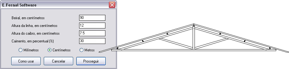 Esta rotina gera uma tesoura de telhado, informados os parâmetros acima e fornecidos os pontos inicial e final do vão desta tesoura...