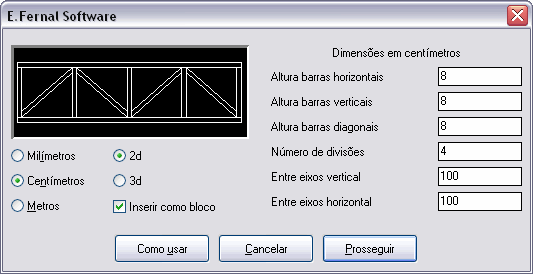 Cria uma treliça horizontal em 2D, que pode ser transformada em bloco pela rotina...