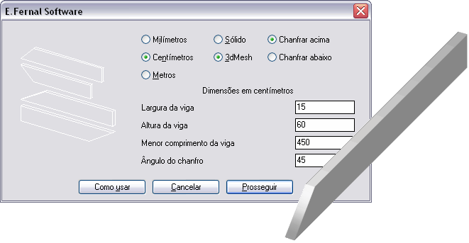 Cria vigas com um canto chanfrado em um ângulo dado... Pode ser em entidade '3DSOLID' ou em entidade 'POLYFACE'