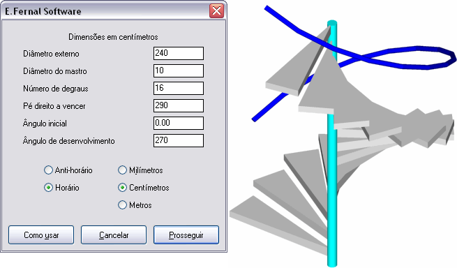 Desenha uma escada em caracol em 3D, em 'POLYFACE'