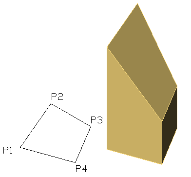 Desenha uma caixa chamfrada em 3D, com 4 lados. Após fornecer os quatro pontos, informe a altura do lado P1-P2 e, em seguida, a altura do lado P3-P4.