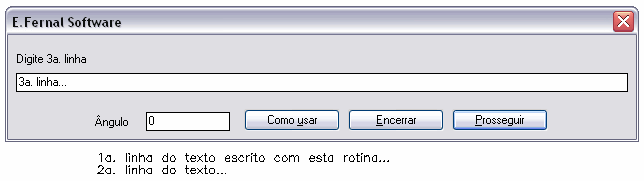 Permite escrever linha a linha, em um quadro de diálogo que irá ser continuamente apresentado, sempre que clicado o botão 'Prosseguir'