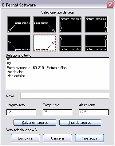 Para um texto não existente, digite o mesmo no campo 'NOVO' e pressione OK para inserir a seta com este texto.