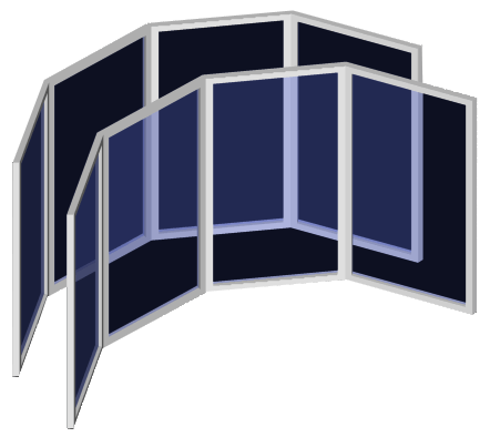 O resultado da rotina, com 2 duas esquadrias para demonstrar a aplicação do acabamento 'Blue Glass'...