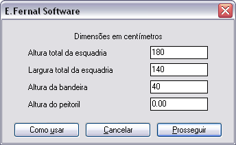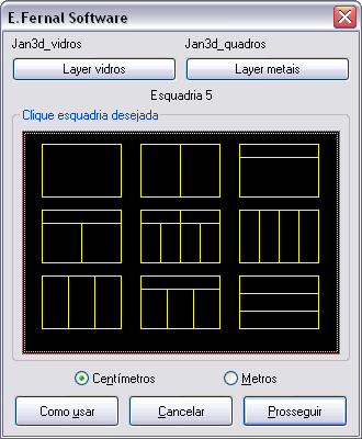 Selecione o tipo de esquadria em 3D a desenhar e clique em 'Prosseguir'