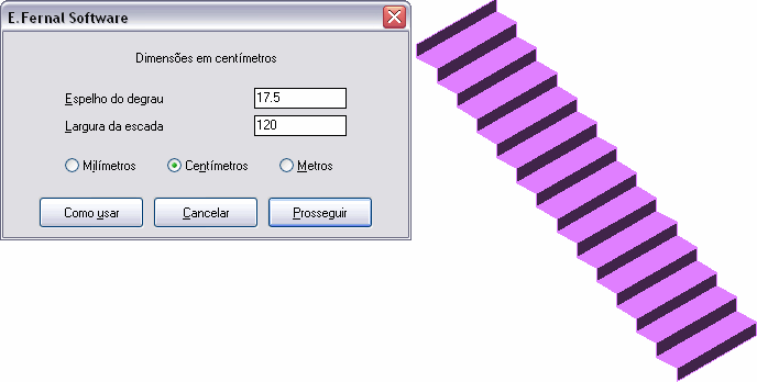 Permite criar uma escada 3D simplificada, a partir da projeção de uma escada normal. Informe os dados do quadro de diálogo e, em seguida, clique seguidamente as extremidades dos espelhos da escada em planta, ou informe continuamente a dimensão do piso corrente...
