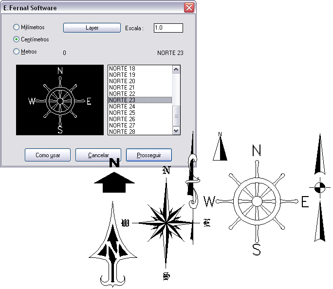 Uma biblioteca de símbolos de norte, que contém linhas para que você possa inserir outros de sua coleção...
