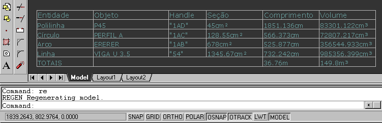 pela rotina GRL-VINC. As entidades válidas são : LINE, ARC, CIRCLE, POLYLINE e LWPOLYNE.