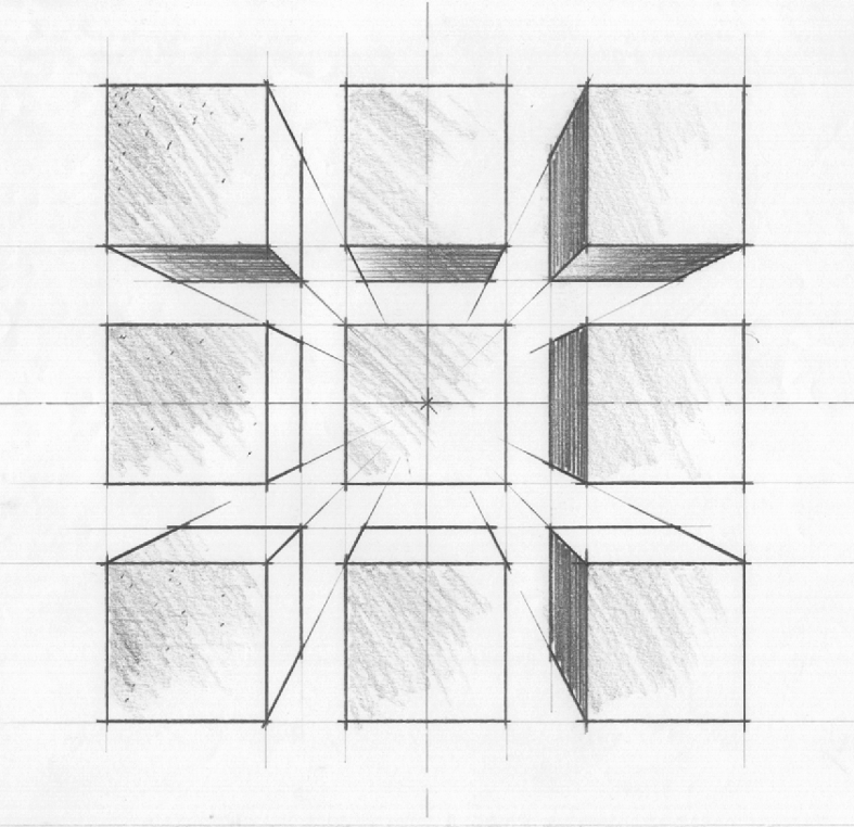 Desenho feito em aula de perspectiva na Uni-BH, para exemplo para alunos. Grafite 6B, 10 minutos, no máximo...