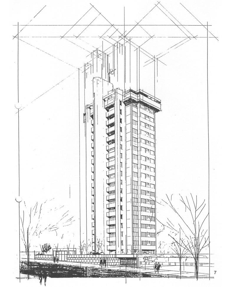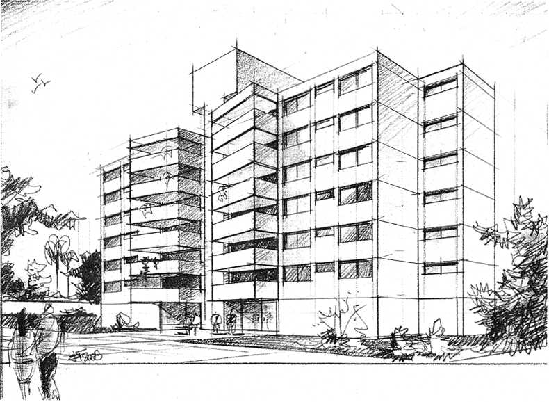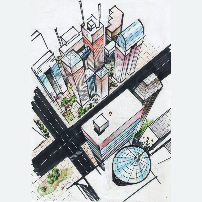 Perspectiva feita de um projeto do meu colega de turma e eterno amigo Júlio Araújo Teixeira, para um concurso de um conjunto habitacional (o qual ele ganhou).