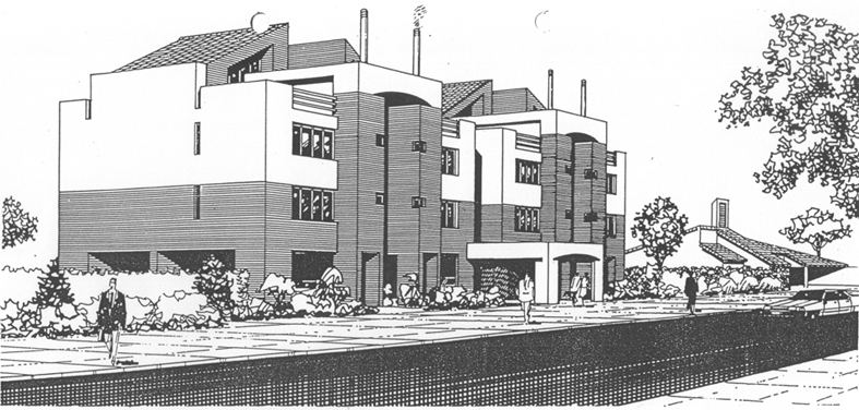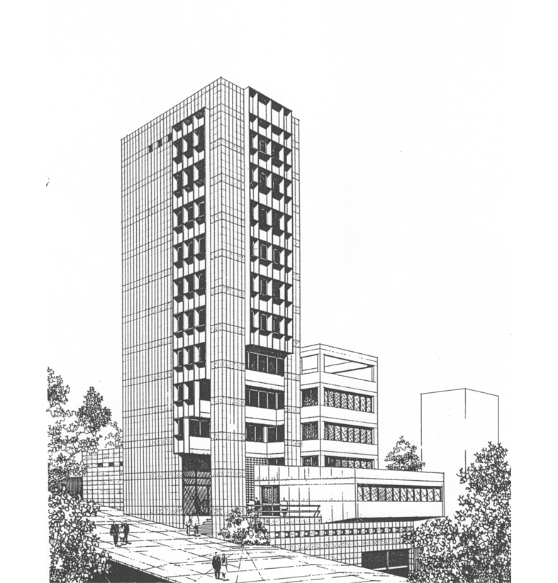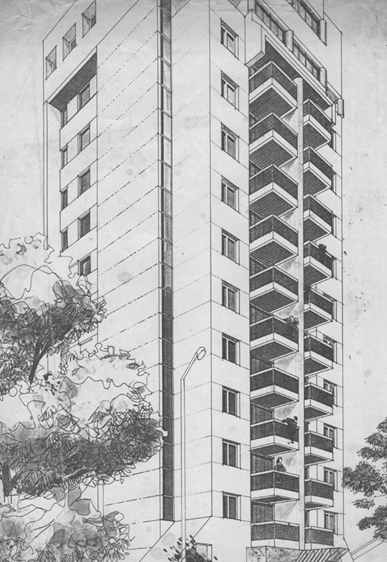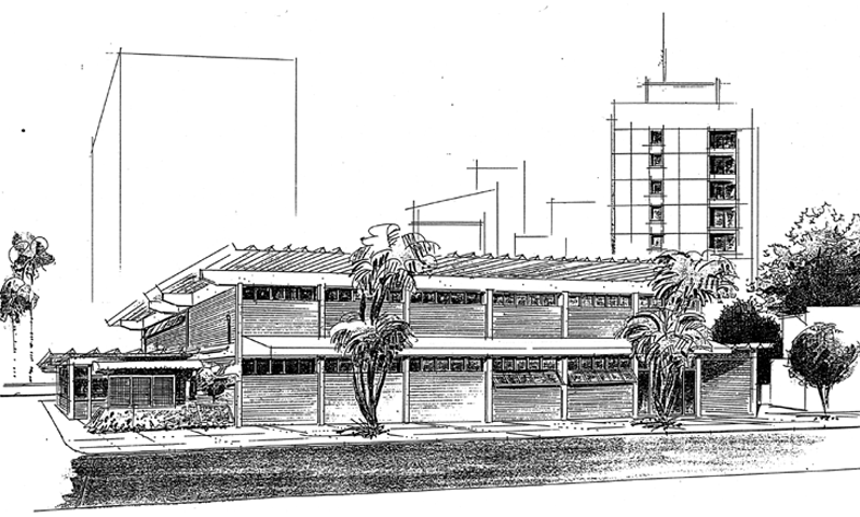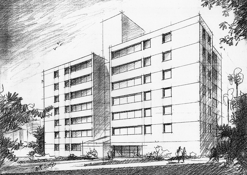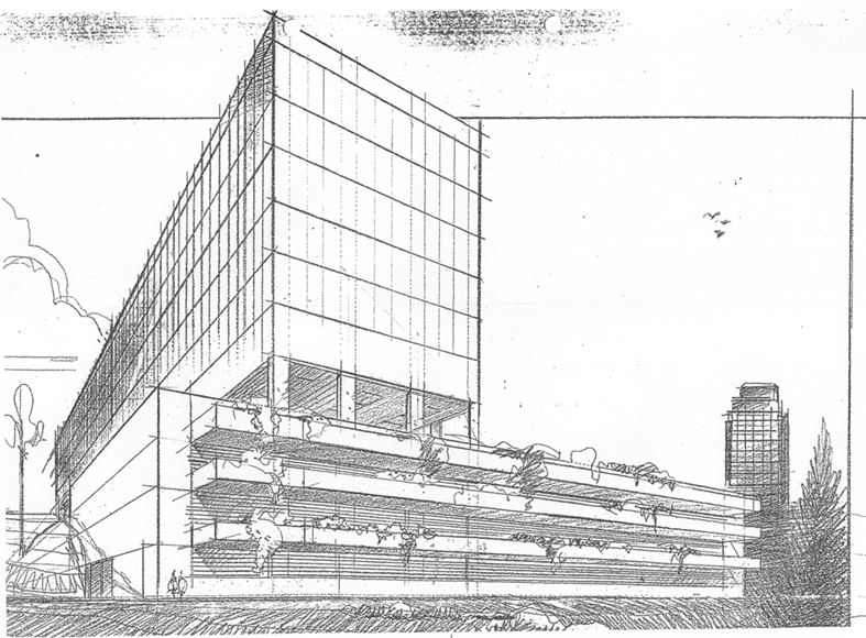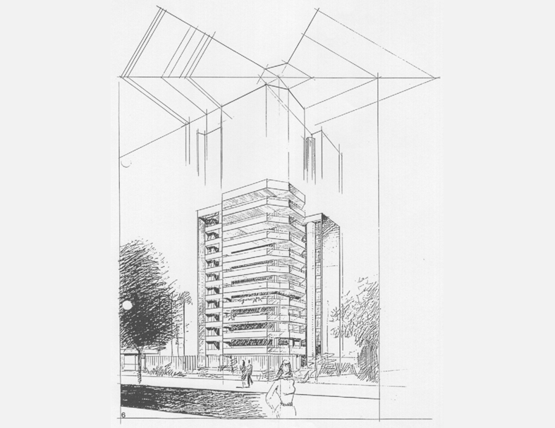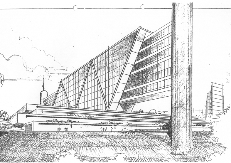 Projeto de Sylvio Emrich de Podestá, para uma proposta para uma associação médica de BH. Não chegou a ser construido...