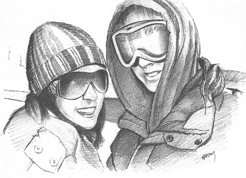 Minha filha Iara e seu então namorado Brett, esquiando em Boise, Idaho, onde ela fez intercâmbio e graduou-se engenheira... Grafite 6B.