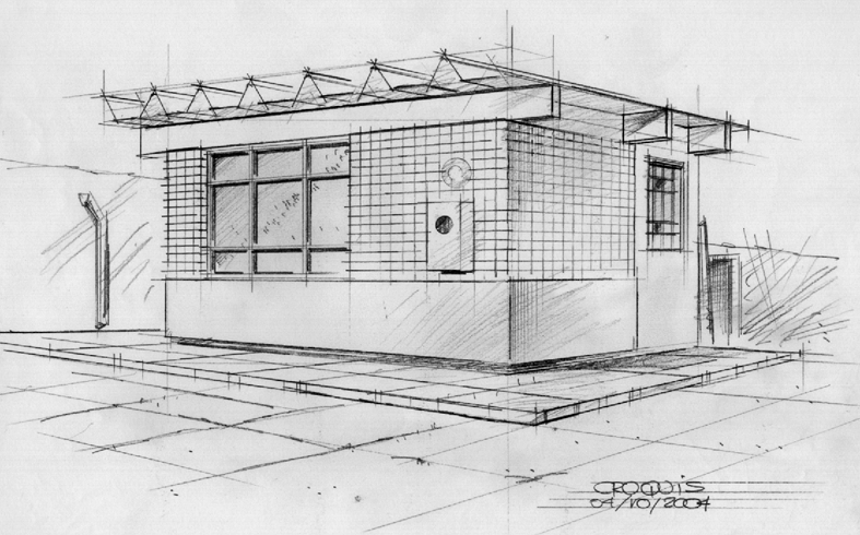 Trabalho de uma aluna, para a disciplina de projetos. Dada sua imensa dificuldade em rabiscar uma perspectiva, desenhei ao lado dela em 10 minutos este croquis...