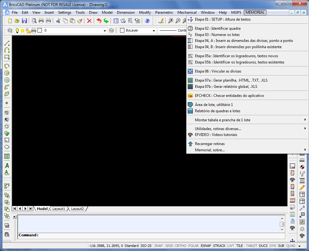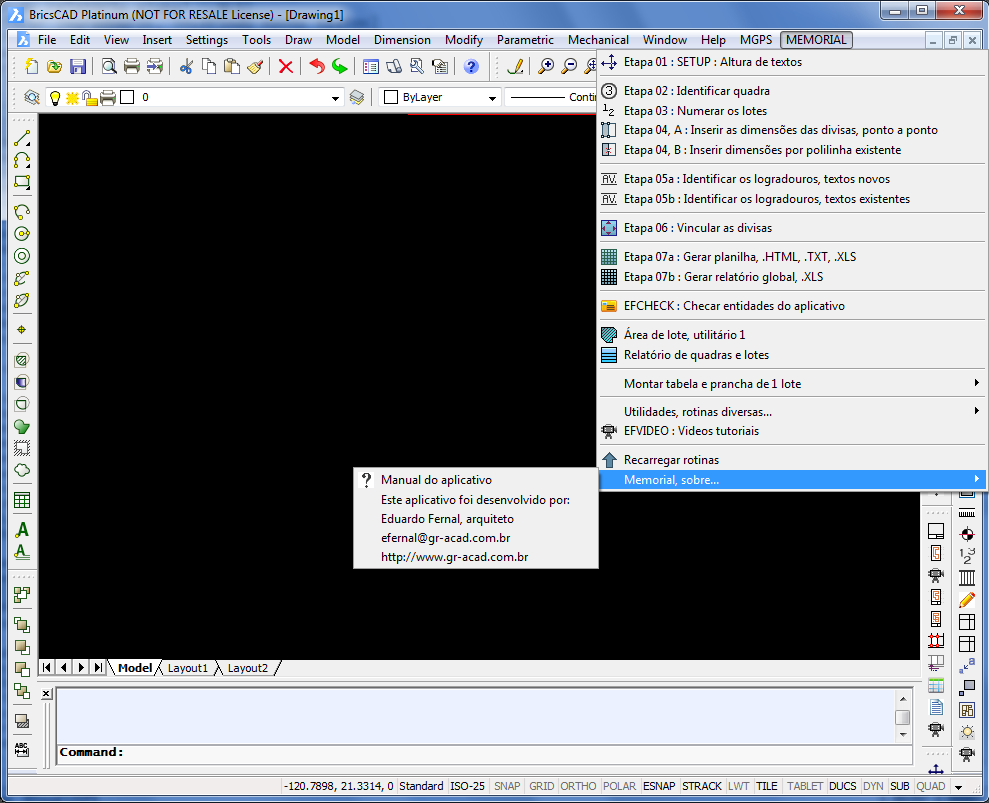 O "Memorial de Lotes" para BricsCad© tem todas as funcionalidades da versão para