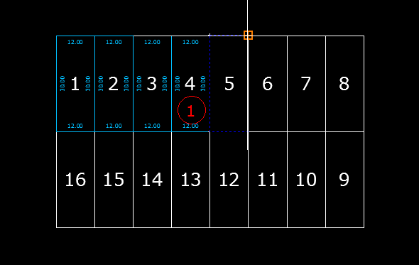 A quadra já com todas as divisas dos lotes desenhadas, com as dimensões automaticamente criadas.