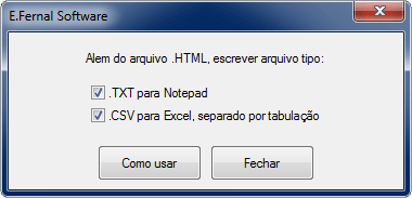 Outros dois arquivos podem ser gerados, ao mesmo tempo. Basta assinalar o(s) formato(s) desejado...
